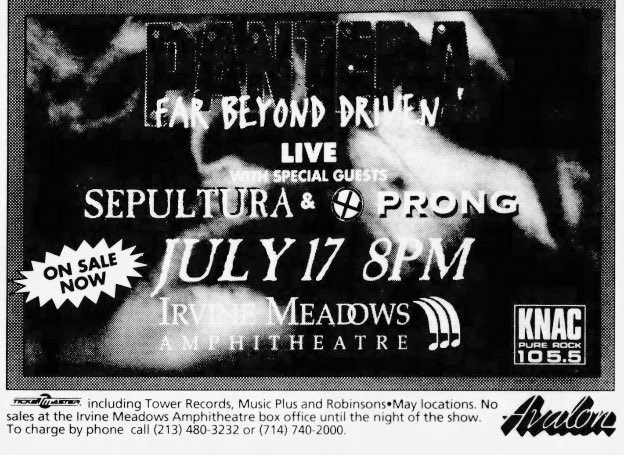 - 13/10/1996; Concert at Starplex, Dallas, TX, USA. opening for Ozzy, with Danzig & Prong.