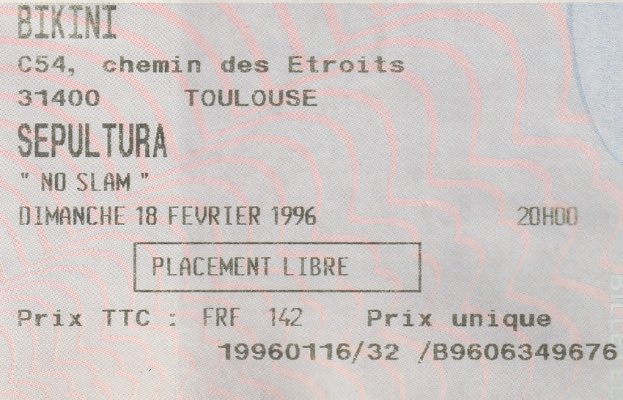 - 02/07/1996; Concert at Transbordeur, Villeurbanne, France.