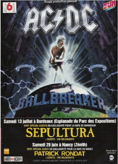 - 13/07/1996; Concert at Parc Des Expositions, Bordeaux, France. opening for AC/DC, with Wildhearts.
