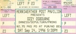 - 14/09/1996; Concert at Merriweather Post Pavillion, MD, USA. opening for Ozzy, with Danzig & Prong.
