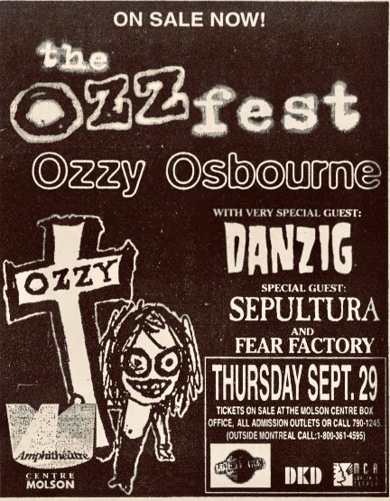 - 27/09/1996; Concert at Centre Molson, Montreal, PQ, Canada. opening for Ozzy, with Danzig & Prong.