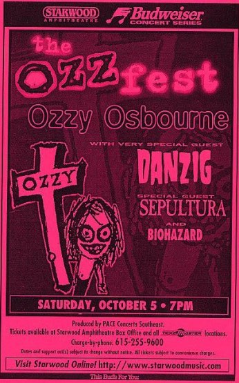 - 05/10/1996; Concert at Starwood Amph., Antioch, TN, USA. opening for Ozzy, with Danzig & Prong.