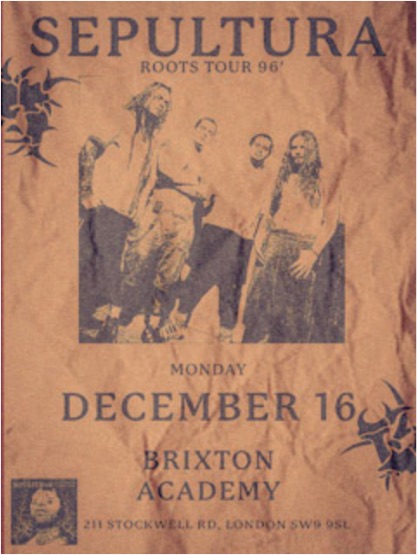 - 16/12/1996; Concert at Brixton Academy, London, England. with Floodgate & Strife. last show with Max. released in 2002 as 'Under A Pale Grey Sky' live album.