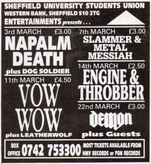 - 07/03/1989; Concert at The University, Sheffield, England. with Metal Messiah.