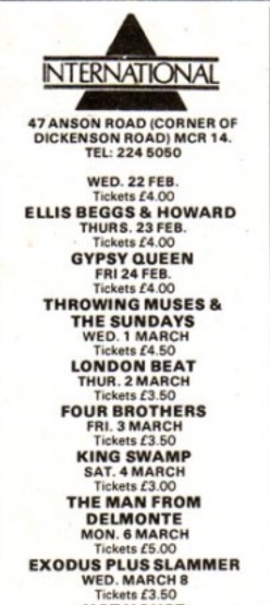 08/03/1989; Concert at The International, Manchester, England. opening for Exodus. (didn't play).