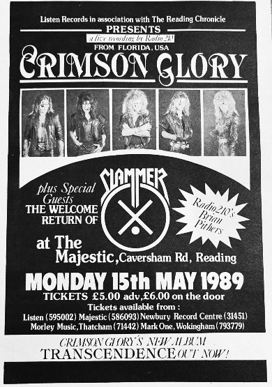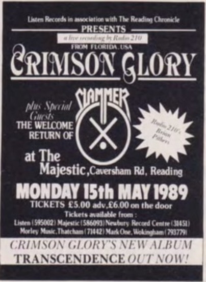 - 15/05/1989; Concert at The Majestic, Reading, England. opening for Crimson Glory.