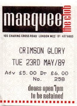- 23/05/1989; Concert at The Marquee, London, England. opening for Crimson Glory.