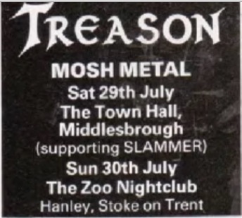 - 29/07/1989; Concert at The Town Hall Crypt, Middlesborough, England. with Treason.