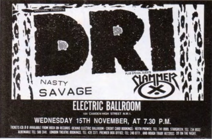 - 15/11/1989; Concert at The Electric Ballroom, London, England. opening for D.R.I. & Nasty Savage.
