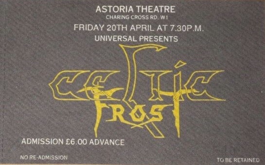 - 17/05/1990; Concert at The Astoria Theatre, London, England. opening for Celtic Frost.