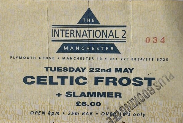 - 22/05/1990; Concert at The International II, Manchester, England. opening for Celtic Frost.