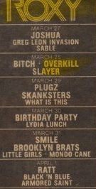 - 28/03/1983; Concert at The Roxy, Hollywood, CA, USA. opening for Bitch & Overkill.