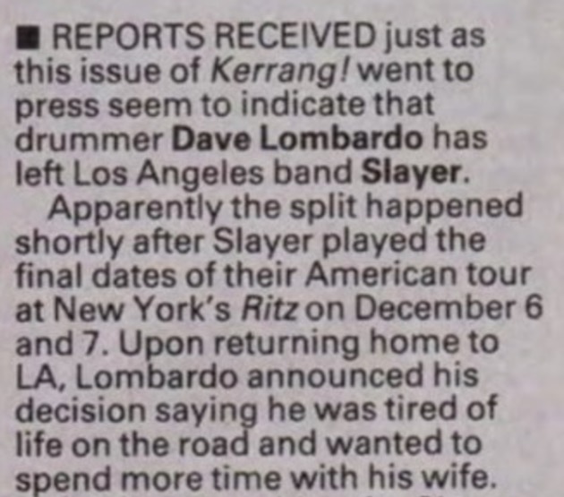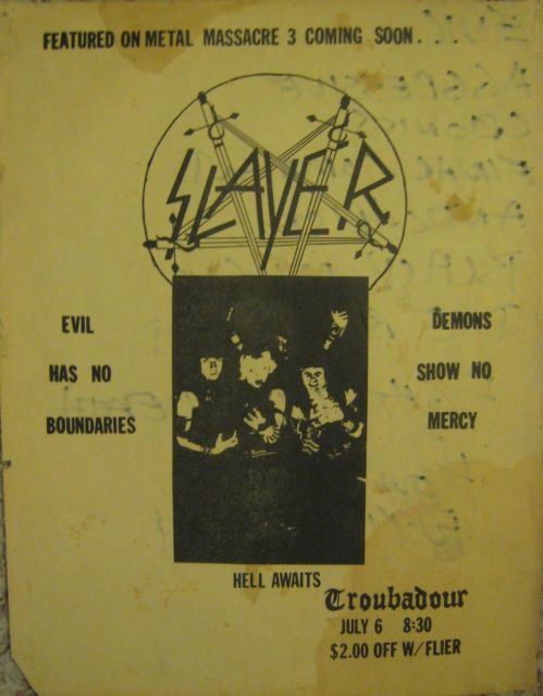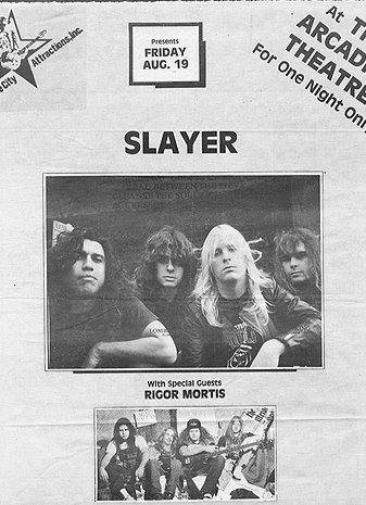 - ??/??/1981; Slayer form in Huntington Park, CA late '81; Tom (v, b), Kerry (g), Jeff (g) and Dave (d).