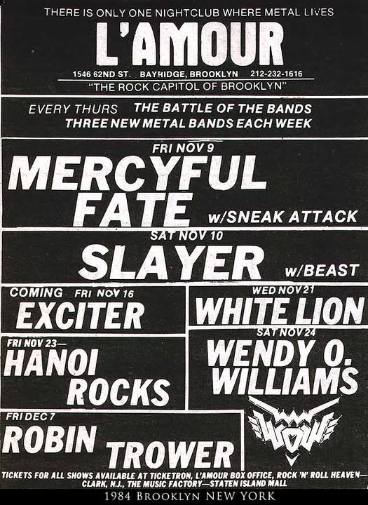 - 10/11/1984; Concert at L'Amour, Brooklyn, NY, USA. with The Beast.