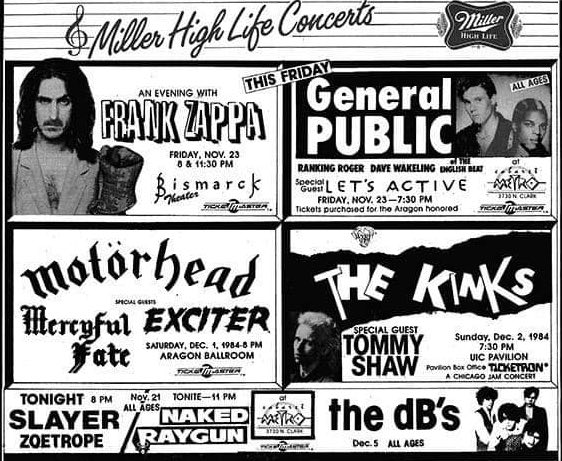 - 21/11/1984; Concert at Cabaret Metro, Chicago, IL, USA. with Zoetrope & Naked Raygun.