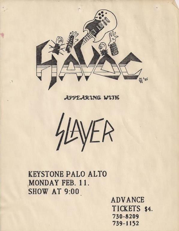 11/02/1985; Concert at The Keystone, Palo Alto, CA, USA. with Havoc. (cancelled).
