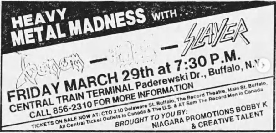 - 27/10/1984; Concert at Larry's Hideaway, Toronto, ON, Canada. with Razor.