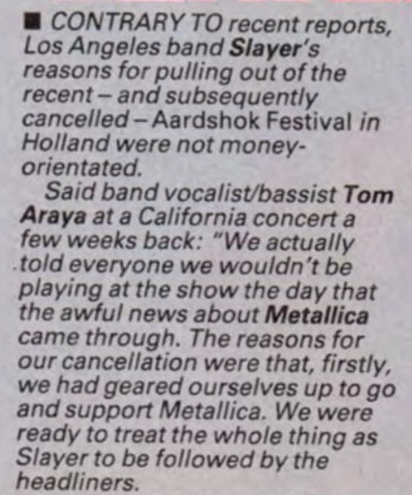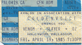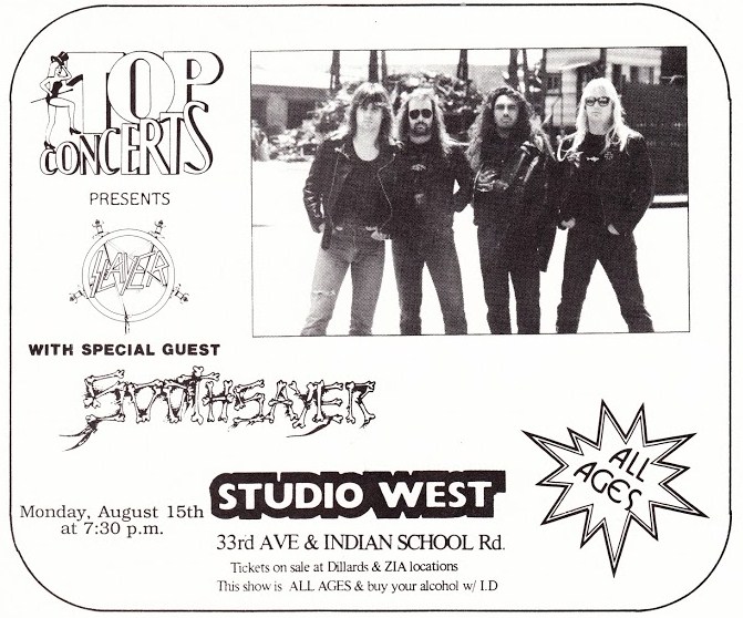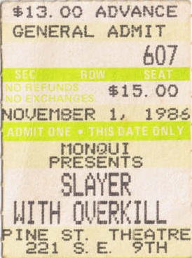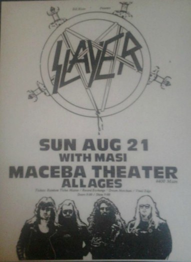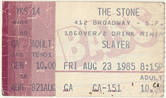 - 09/02/1985; Concert at The Stone, San Francisco, CA, USA. with Death Angel.