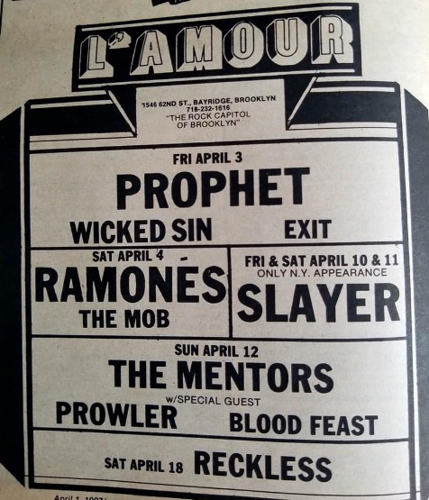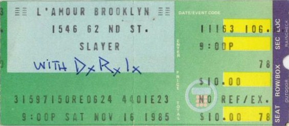 - 28/12/1984; Concert at L'Amour, New York, NY, USA. with Megadeth.