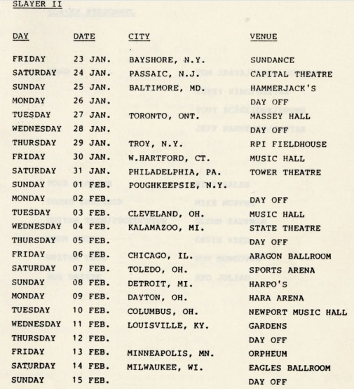 - 02/12/1984; Concert at Casino Ballroom, Houston, TX, USA. with Crimson Kross & Minotaur. (moved to/from 1st?).