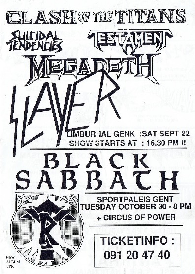 - 20/02/1991; Concert at Atlanta Civic Centre, Atlanta, GA, USA. with Testament.