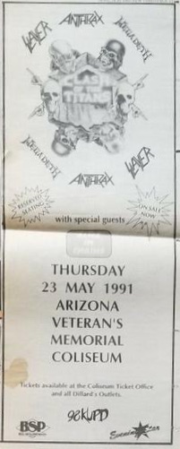 - 23/05/1991; Concert at Arizona Veterans Memorial Coliseum, Phoenix, AZ, USA. opening for Megadeth with Anthrax & Alice In Chains.