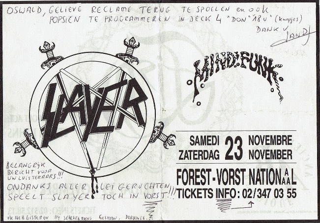- 23/11/1991; Concert at Forest National, Brussels, Belgium. with Mindfunk.