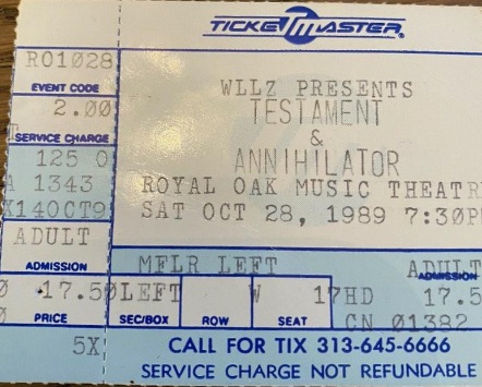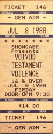 - 21/08/1987; Concert at The Token Lounge, Westland, MI, USA. opening for Overkill.