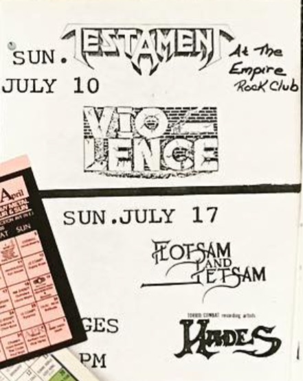 - 08/02/1986; Concert at Eagles Night Club, Oakland, CA, USA. with Defiance.