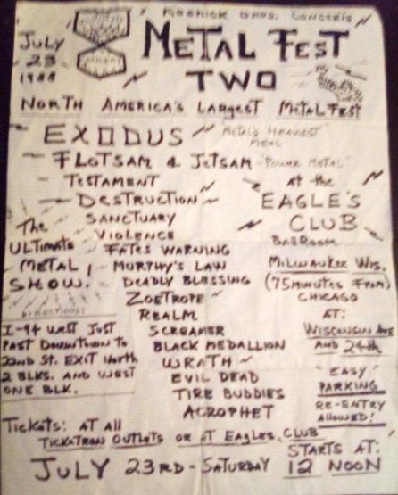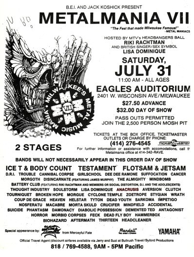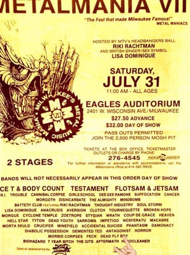 - 31/07/1993; Concert at Eagle's Auditorium, Milwaukee, WI, USA. with Flotsam & Jetsam & dozens. 'Metalfest'.
