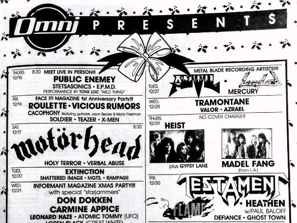 - 10/07/1987; Concert at The Omni, San Francisco, CA, USA. with Heathen & Forbidden Evil.