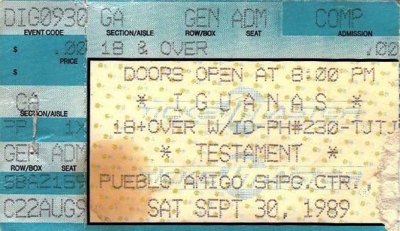 - 03/07/1987; Concert at The Civic Center, Santa Monica, CA, USA. opening for Anthrax & Metal Church.