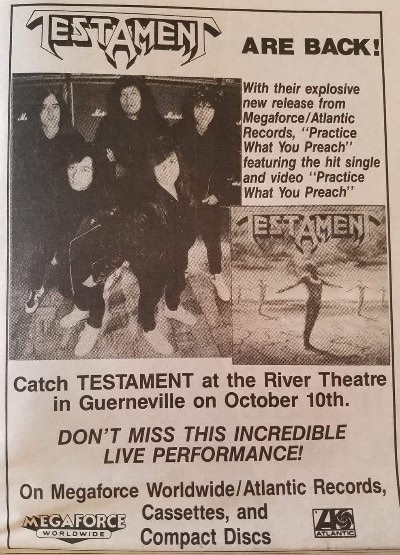- 21/07/1987; Concert at Saenger Theatre, Pensacola, FL, USA. opening for Anthrax. (Jul. 21st - Aug. 30th; 'First Tour Still Deadly' tour 1987).