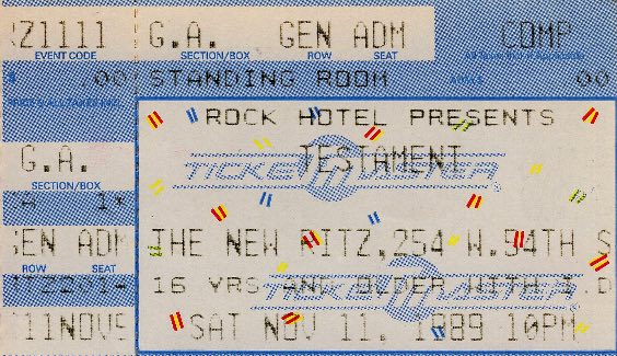 - 04/08/1987; Concert at City Gardens, Trenton, NJ, USA. opening for Anthrax.