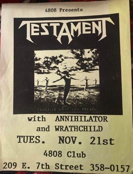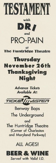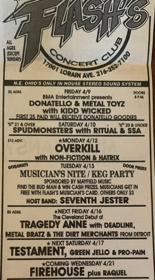 - 19/08/1987; Concert at Peabody's Down Under, Cleveland, OH, USA. opening for Overkill.