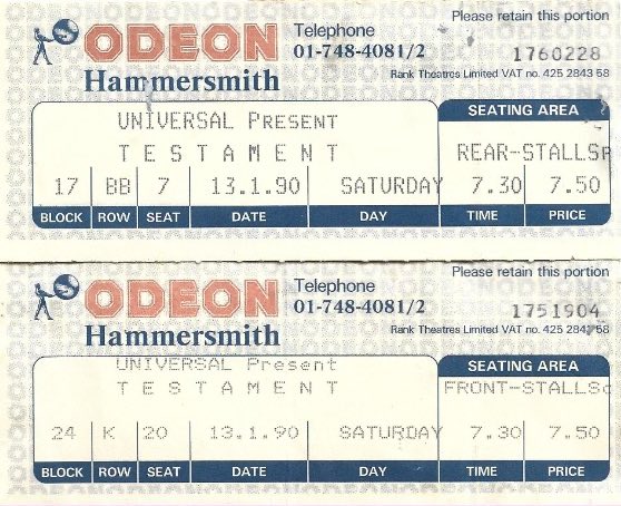 - 20/10/1987; Concert at Alabamahalle, Munich, Germany. opening for Anthrax.