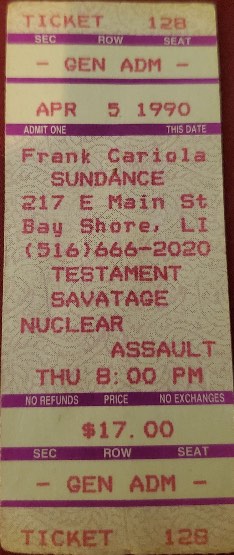 - 14/08/1987; Concert at Sundance, Bayshore, NY, USA. opening for Overkill.