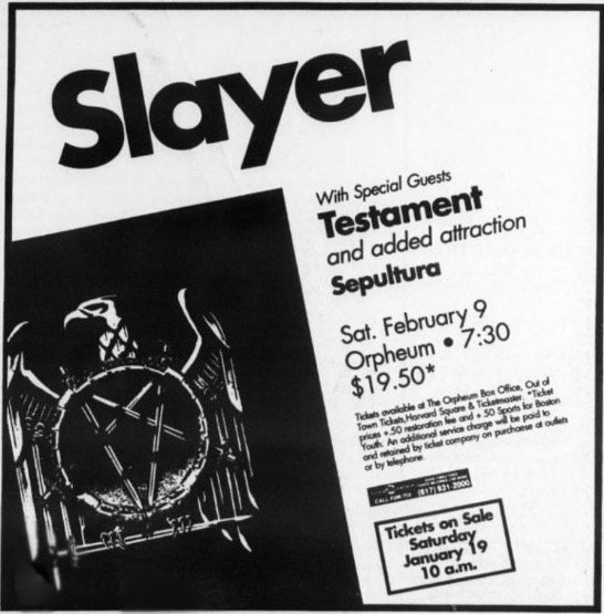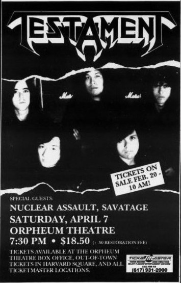 - 16/08/1987; Concert at The Channel, Boston, MA, USA. opening for Overkill.