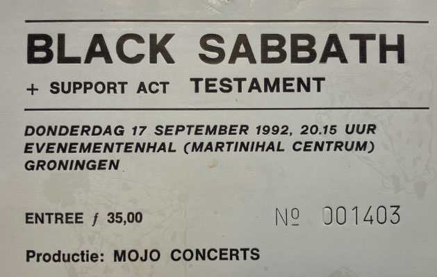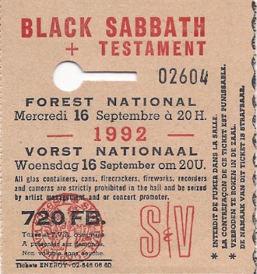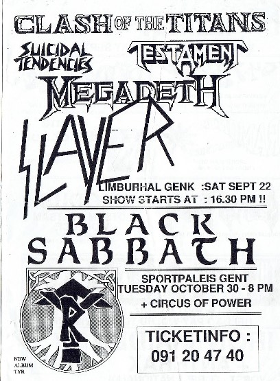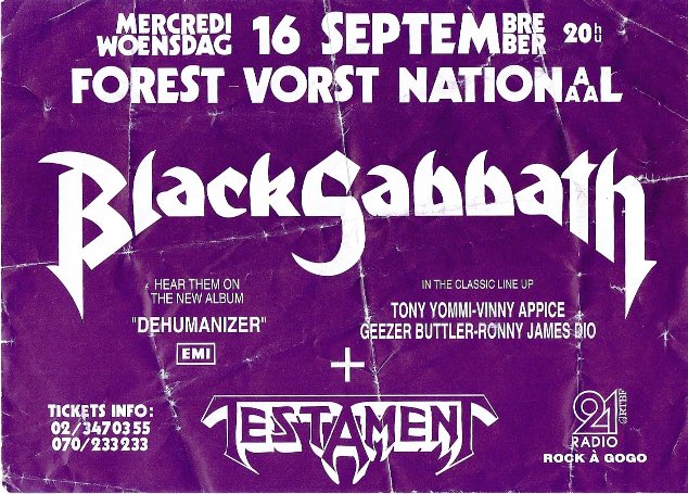 - 10/10/1987; Concert at Hof Ter Lo, Antwerp, Belgium. opening for Anthrax.