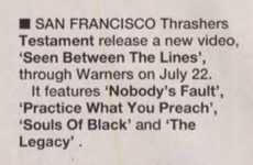 - ??/07/1993; Testament have a long quiet spell while they record the new album.