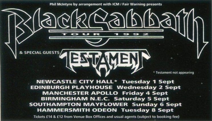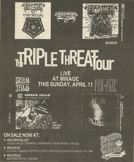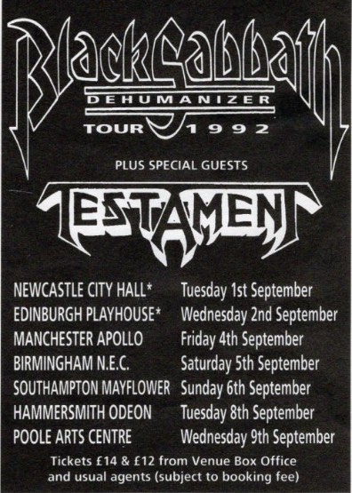 - ??/11/1994; Testament start touring in Nov. '94 and into '95, dates to follow.