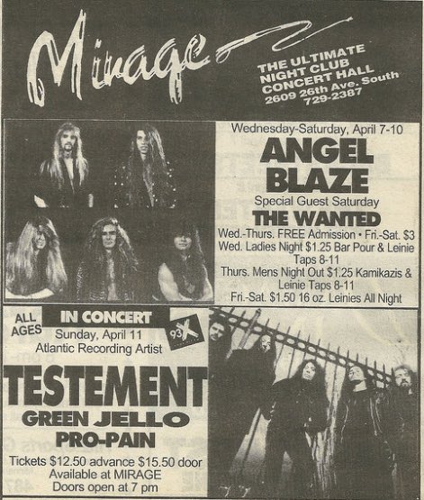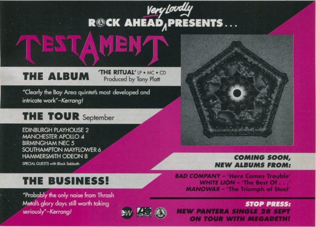 - 24/07/1987; Concert at The Metroplex, Atlanta, GA, USA. opening for Anthrax & Metal Church.