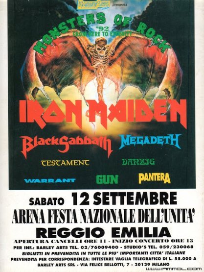 - 22/10/1987; Concert at Sports Palace, Emilia Reggio, Italy. opening for Anthrax.