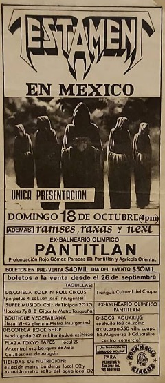 - 18/10/1992; Concert at Ex-Balneario Olimpico Pantitlan, Mexico City, Mexico. with Ramses, Raxas & Next.