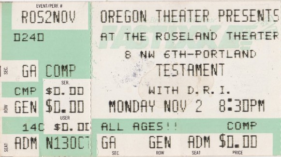 - 02/11/1992; Concert at Roseland Theatre, Portland, OR, USA. with D.R.I. & Pro-Pain.