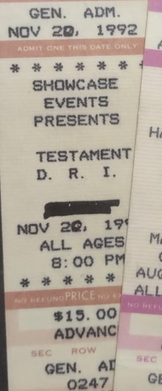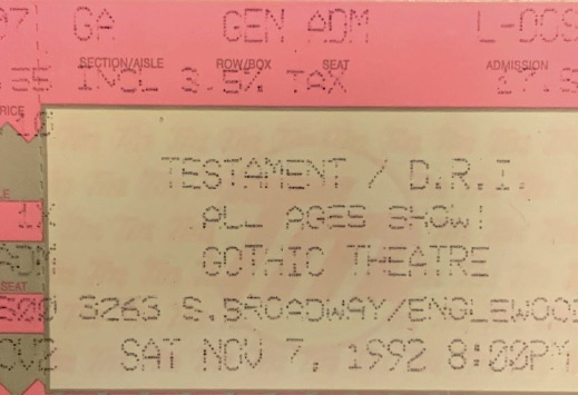 - 07/11/1992; Concert at Gothic Theatre, Englewood, CO, USA. with D.R.I. & Pro-Pain.