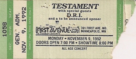 - 09/11/1992; Concert at First Avenue, Minneaplois, MN, USA. with D.R.I. & Pro-Pain.