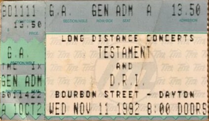 - 11/11/1992; Concert at Bourbon Street, Dayton, OH, USA. with D.R.I. & Pro-Pain.