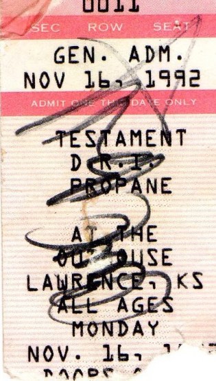 - 16/11/1992; Concert at The Outhouse, Lawrence, KS, USA. with D.R.I. & Pro-Pain.