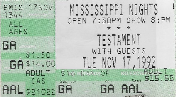 - 17/11/1992; Concert at Mississippi Nights, St. Louis, MO, USA. with D.R.I. & Pro-Pain.